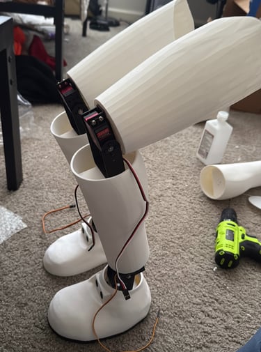 In late 2024, I started learning Blender, making projects and modeling designs I could print. For about a month I worked on which servo motors would be perfect for Spookey's legs, how the servos would fit in the legs, and what the weight of the printed parts and the components should be ideally. The first leg model I made was kind of rough, but it gave me a real starting point. Once I saw how the pieces actually fit together, it felt like, okay, this can actually turn into a working robot.