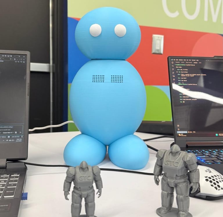 Blue is a locally powered voice-assistant robot designed to demonstrate how modern AI can run privately on personal hardware. A Raspberry Pi 5 captures spoken commands through a microphone and sends them to a locally hosted large language model running on a secondary computer. The systems communicate through SSH, allowing the Pi to handle the physical interface while the heavier AI processing runs on more powerful hardware.